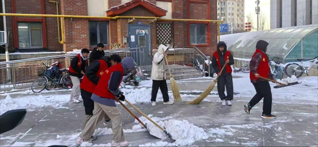 活动中,志愿者们不畏严寒,手持工具清理校园主要道路与公共场所的积雪积冰,保障师生出行安全。此外,学院将“大学生社区建功行动”落到实处,主动对接结对社区与街道,参与扫雪任务,在实践中展现青年担当。