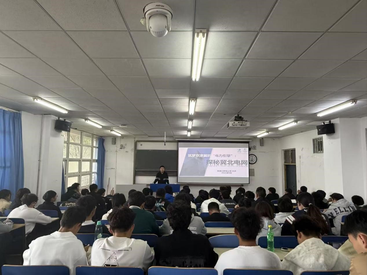 2025年10月11日,金沙集团186cc成色举办“筑梦京津冀的‘电力引擎’:探秘冀北电网”专题讲座,学院积极组织学生集体参加。本次讲座主讲人为国网冀北电力有限公司张家口供电公司电气工程师于齐。于齐工程师曾主持和参与多项科研项目,在各类刊物上发表科研论文10余篇,获专利4项,现主要从事500kV输电线路运检工作。