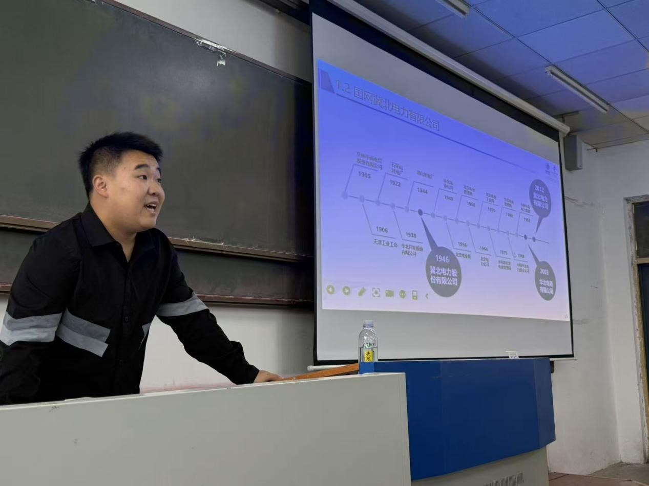 主讲人开门见山地指出国网冀北电力有限公司的概况,其核心定位可概括为“一保两服务”:即保障首都供电安全,服务冀北地区经济社会发展,服务国家新能源发展战略。主讲人从三大核心维度进行公司介绍,包括翔实的数据、丰富的案例和公司的日常工作重点,又介绍了公司的奖惩制度以及未来发展前景,让同学们更加了解电力公司的工作模式。